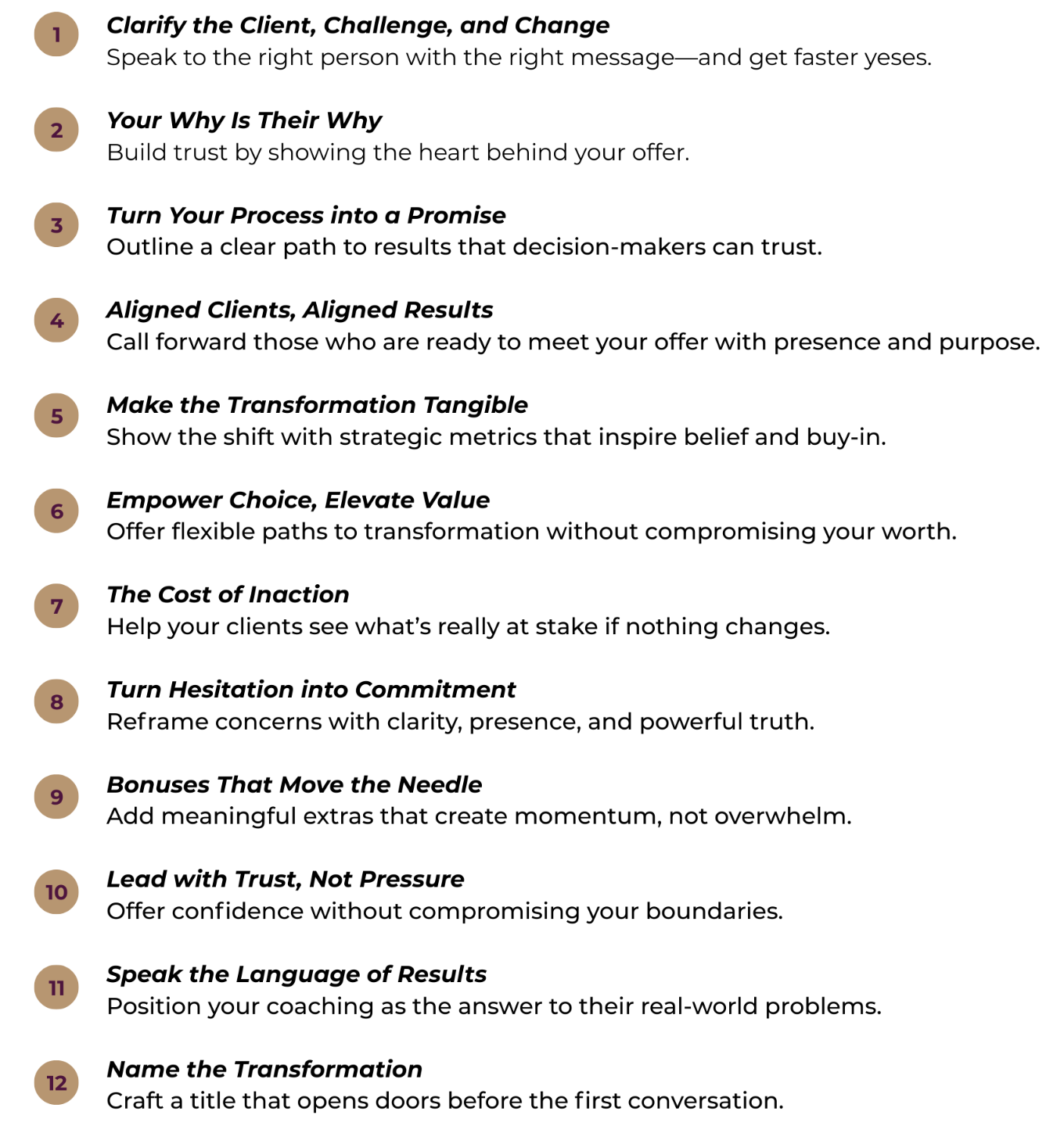 ✅ Design an outcome-aligned offer built for leadership-level clients.